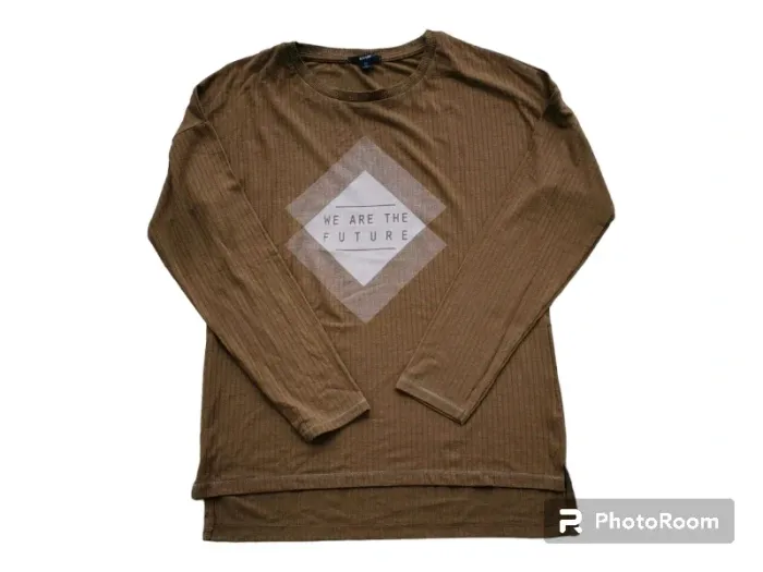 Tee-shirt long manches longues XS 14 ans kiabi kaki. Plus long derrière que devant. V9 #14ansmathiousefr #tailleXSmathiousefr