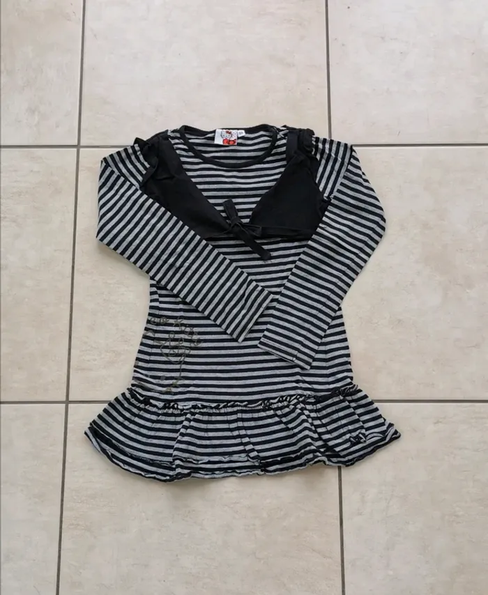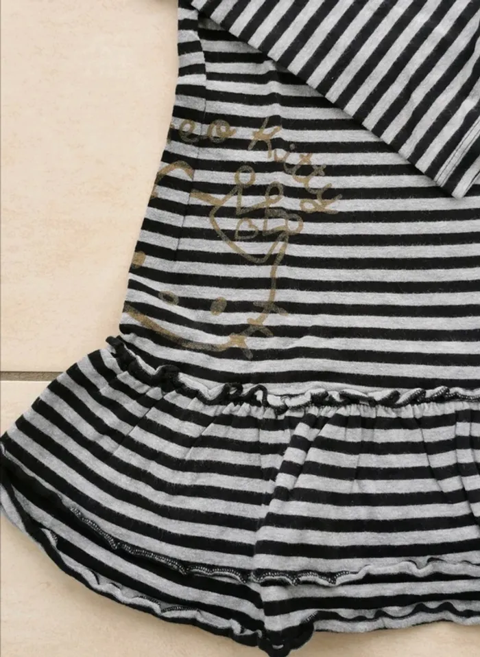 Tunique manches longues hello kitty rayée noire et grise 8 ans. V5 #8ansmathiousefr
