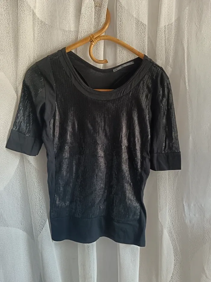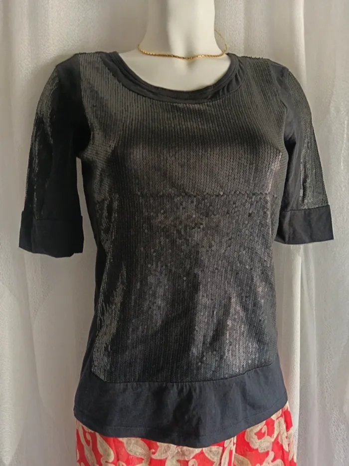 Marithé François Girbaud | Tee-shirt noir à sequins | t. 42 - photo numéro 1