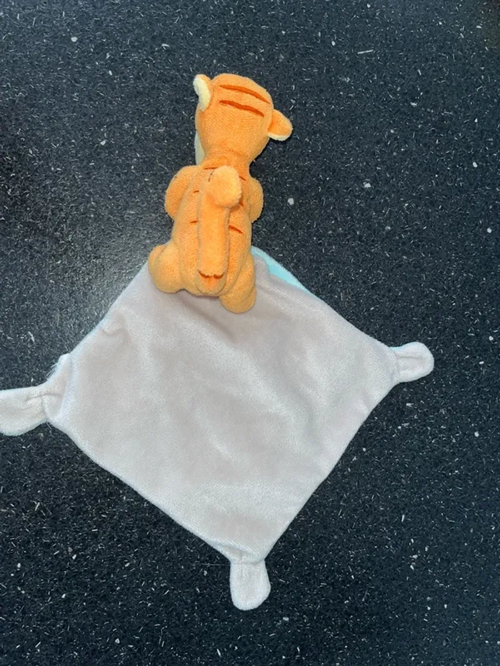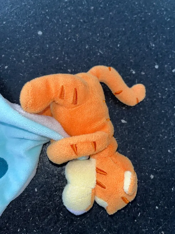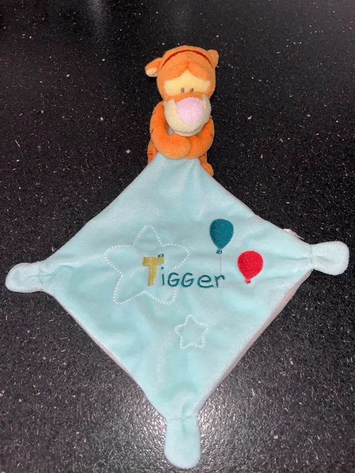 Prix non négociable, merci peluche petite Tigrou, ami de Winnie, 12 cm environ tenant son doudou. Mouchoirs plat dans les bras brodé, Tiger, ballon, bleu, rouge étoile, bleu ciel, gris orange. L’étiquette de la marque a été coupée. L’article est en très bon état.