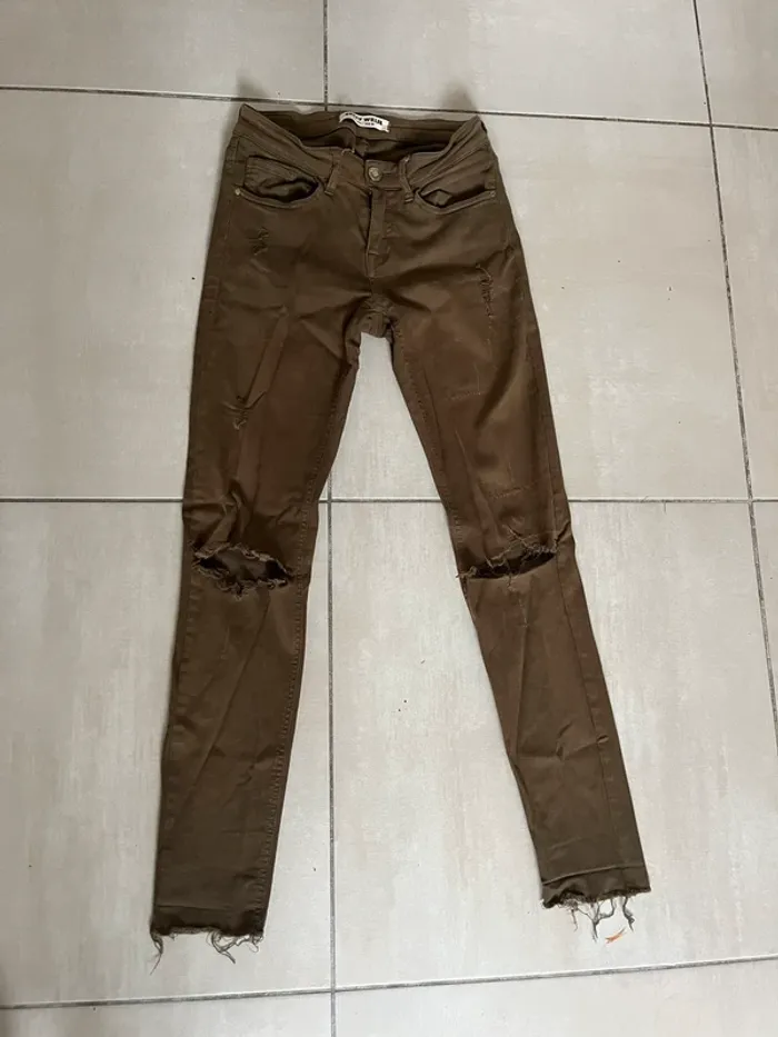 Jean troué kaki Tally Weijl taille 36 - photo numéro 1