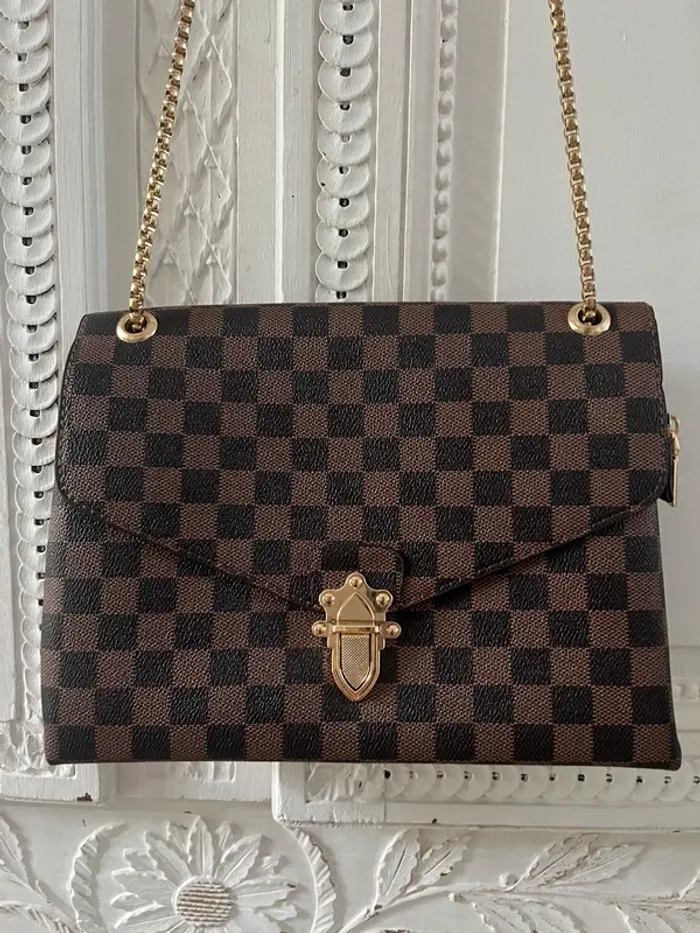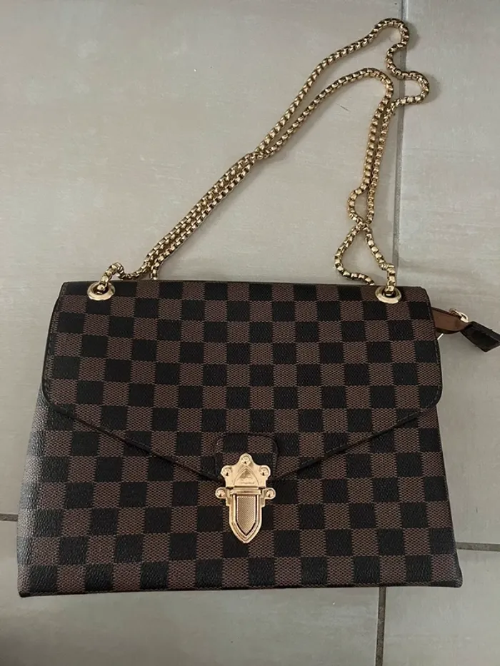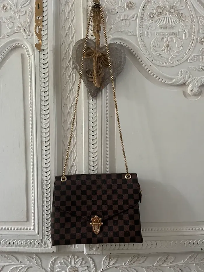 Neuf Sac bandoulière damier marron et doré - photo numéro 1