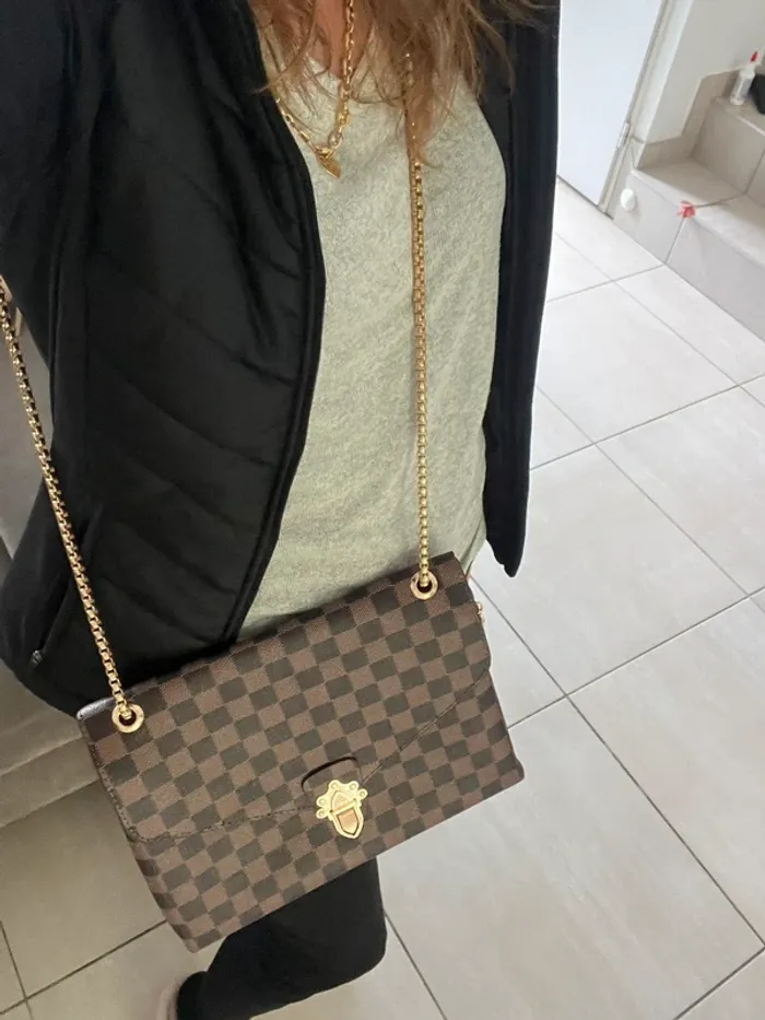 Neuf Sac bandoulière damier marron et doré - photo numéro 2