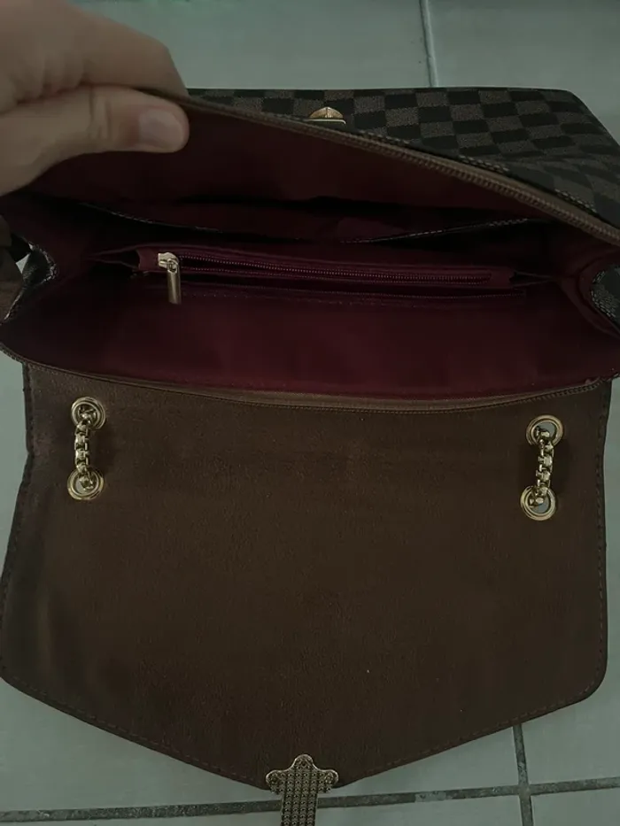 Neuf Sac bandoulière damier marron et doré - photo numéro 4