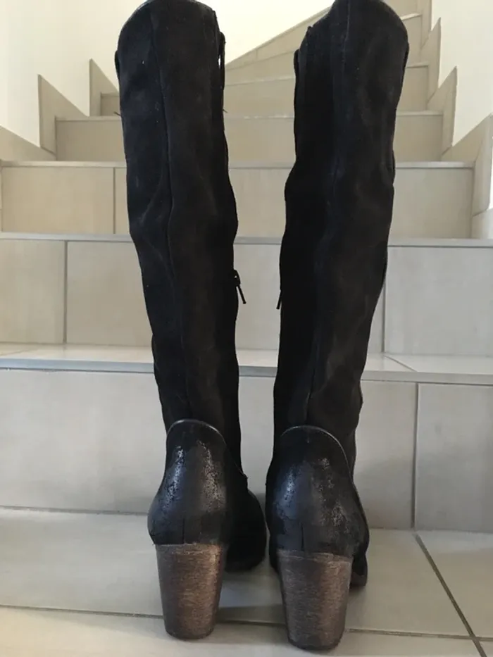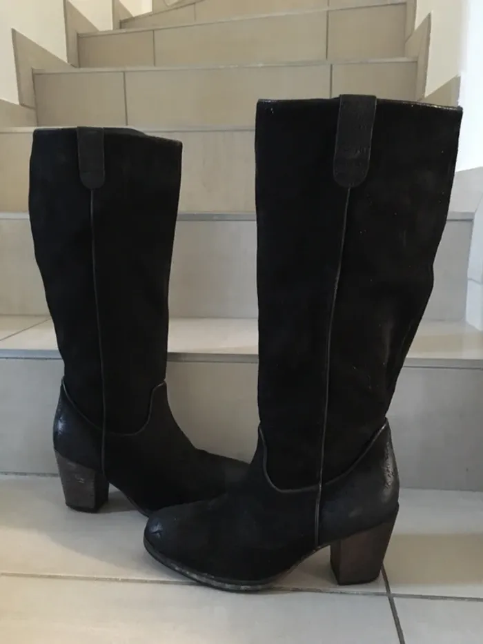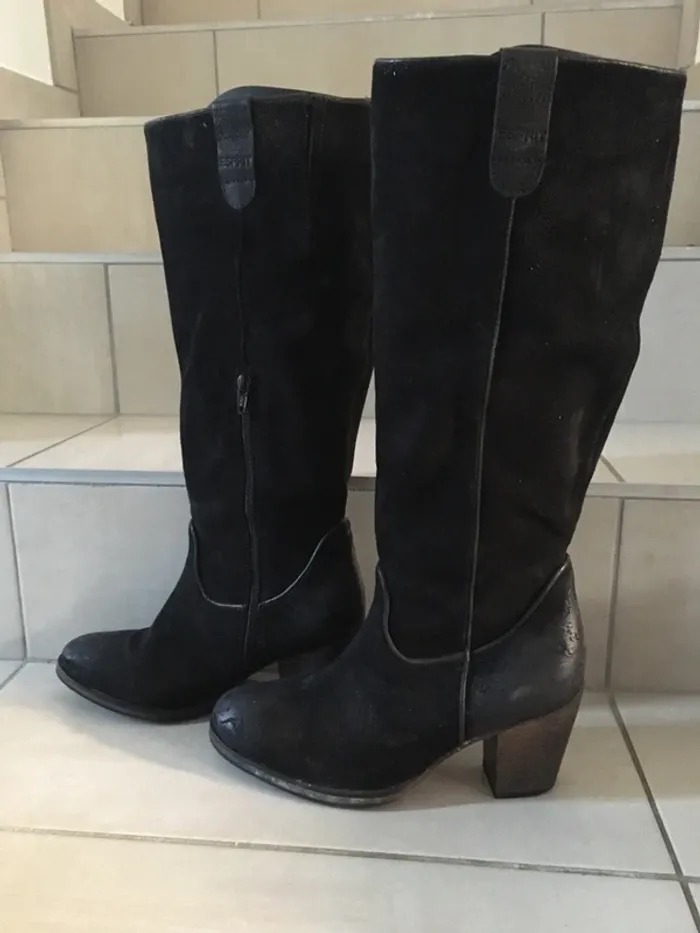 Bottes en cuir (daim) noir esprit pointure 39 - photo numéro 1