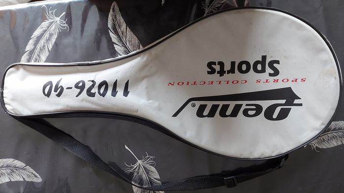 Raquette de tennis enfant Denn 11026-90 Neuve avec la protection sur le manche et sa housse qui est à nettoyer et est un peu abîmée par l'entreposage