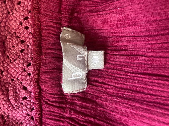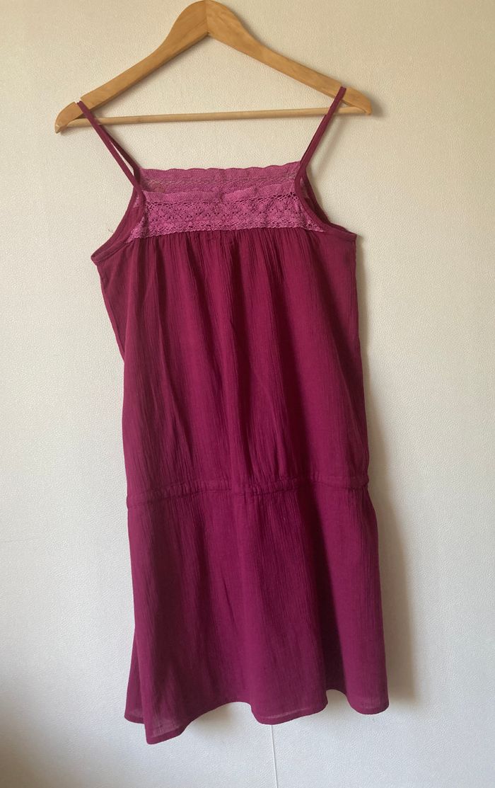 taille 40 petite bande au crochet en haut cordon à reserrer au niveau de la taille largeur au niveau des aisselles 41 hauteur 68 cm à partir de l'aisselle pas de défaut