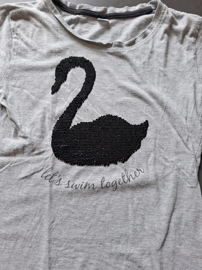 Tee-shirt manches courtes sequins cygne Zeeman 9-10 ans - photo numéro 1