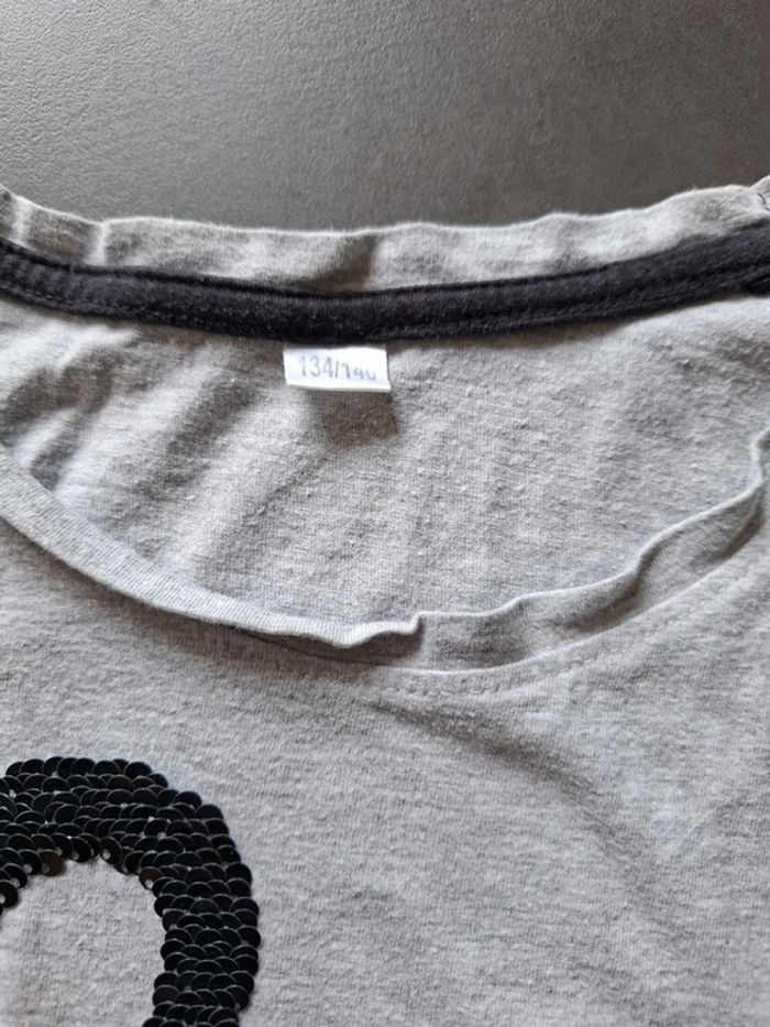 Tee-shirt manches courtes sequins argenté ou noir cygne en très bon état général maisbun peu bouloché étiqueté 9-10 ans #9ansfillenadege-88 #10ansfillenadege-88