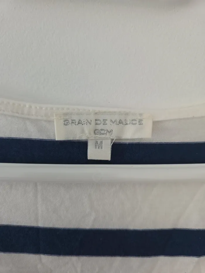 Tee-shirt manche courte été femme blanc motifs marinière TBE taille M grain de malice - photo numéro 1