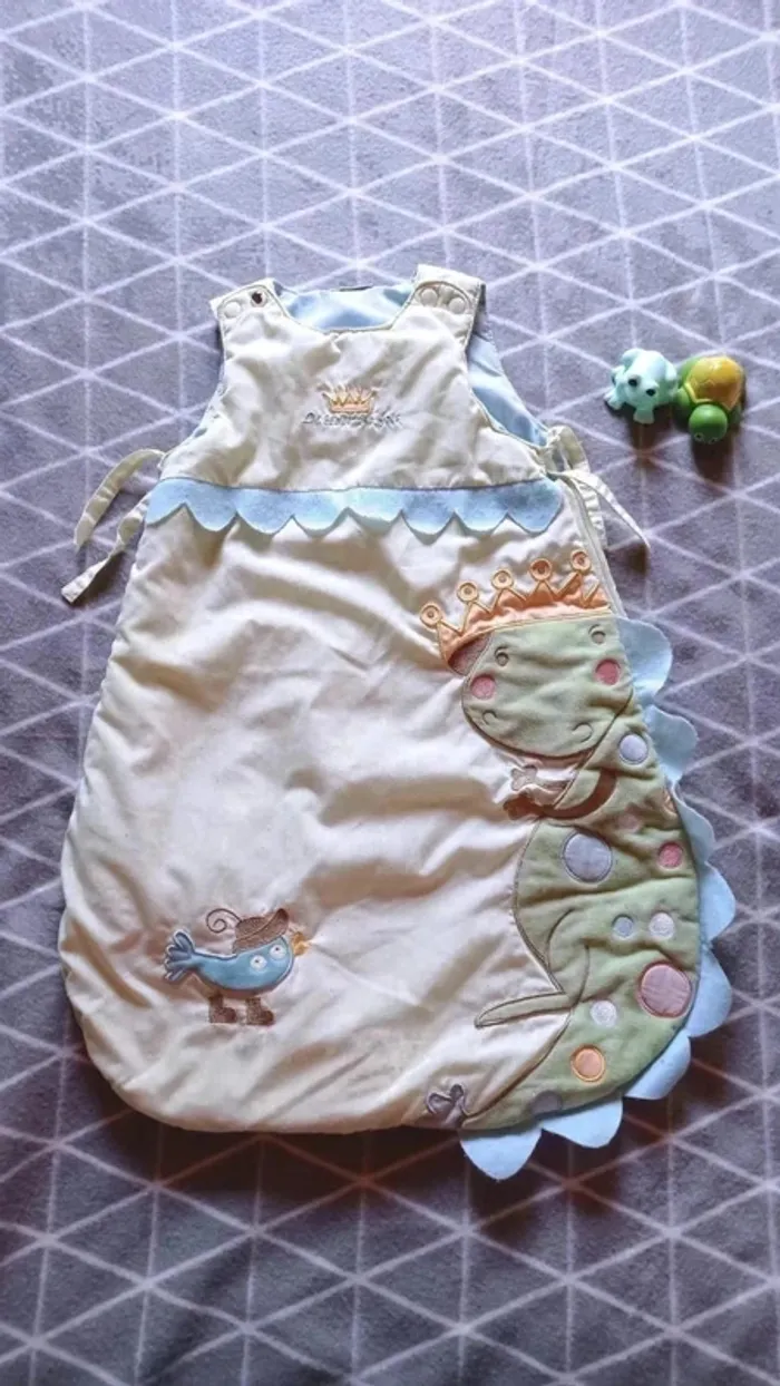 Gigoteuse Vertbaudet, assez légère, bien servi (bouloche un peu au niveau des décos en feutrine et peinture un peu écaillée sur boutons pressions) mais reste en bon état général. Pas de trou, pas de tâche et la fermeture éclair fonctionne très bien. Il n'y a pas d'étiquette de taille mais de l'épaule jusqu'au bas elle mesure 59cm. Couleur principale : vert clair. #frip_accessoiresbébés ⚠️lots : contactez-moi pour que je vous fasse une annonce spécifique si vous souhaitez faire un lot, une remise sera effectuée sur le total 😊