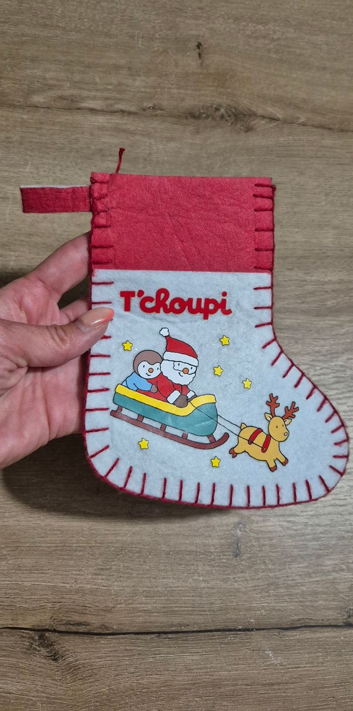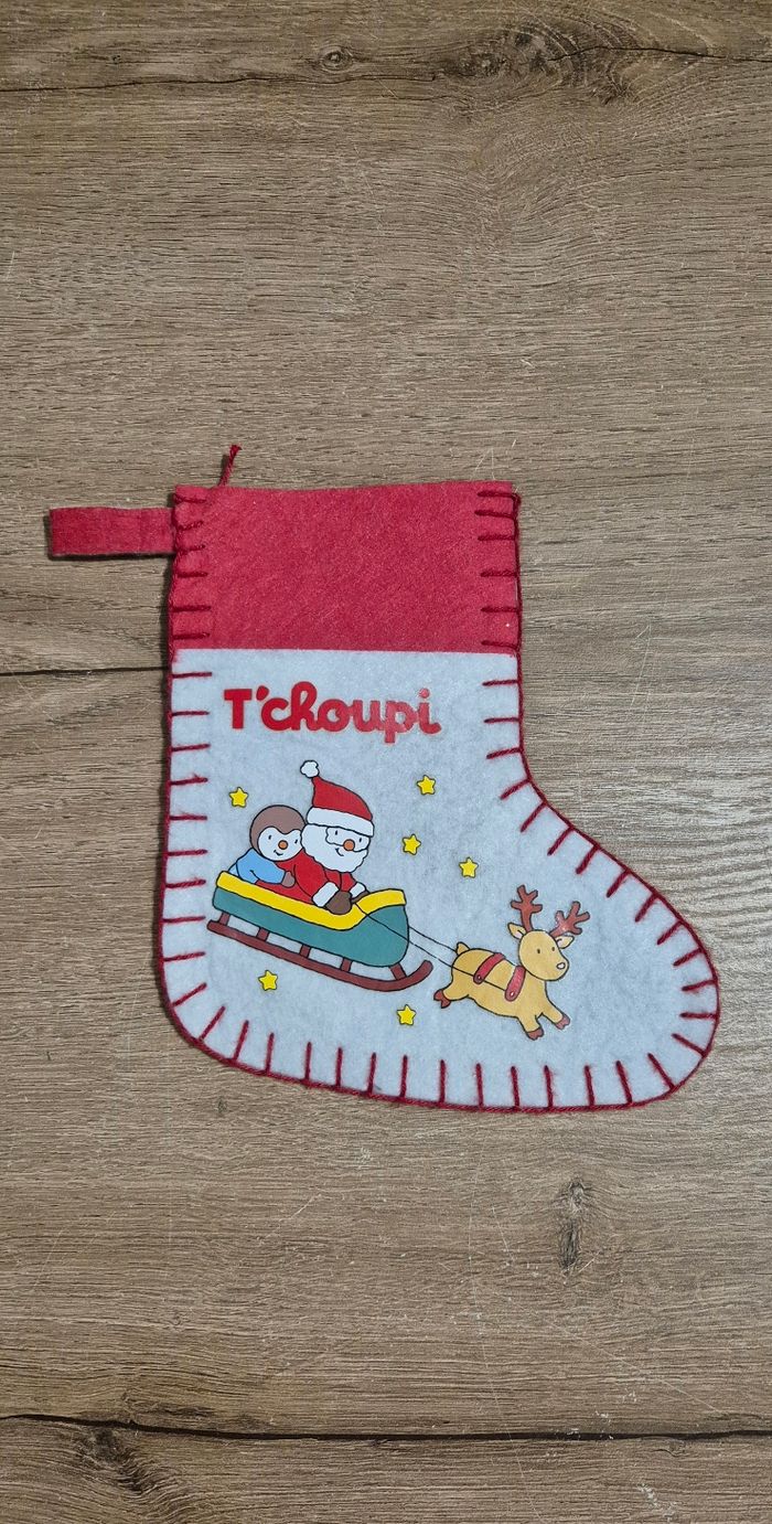 Chaussette de Noël pour y glisser des bonbons ou autre T'choupi Neuve, jamais servie, mais toute petite tâche à l'arrière, voir dernière photo