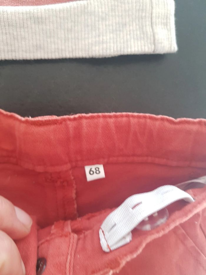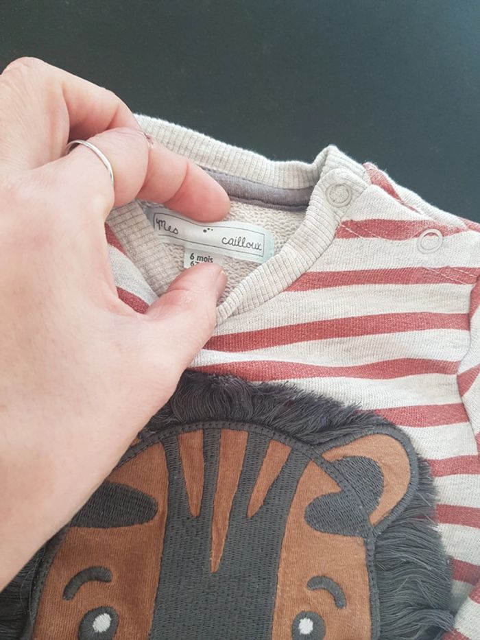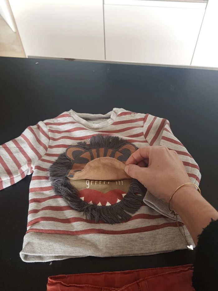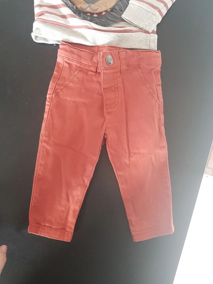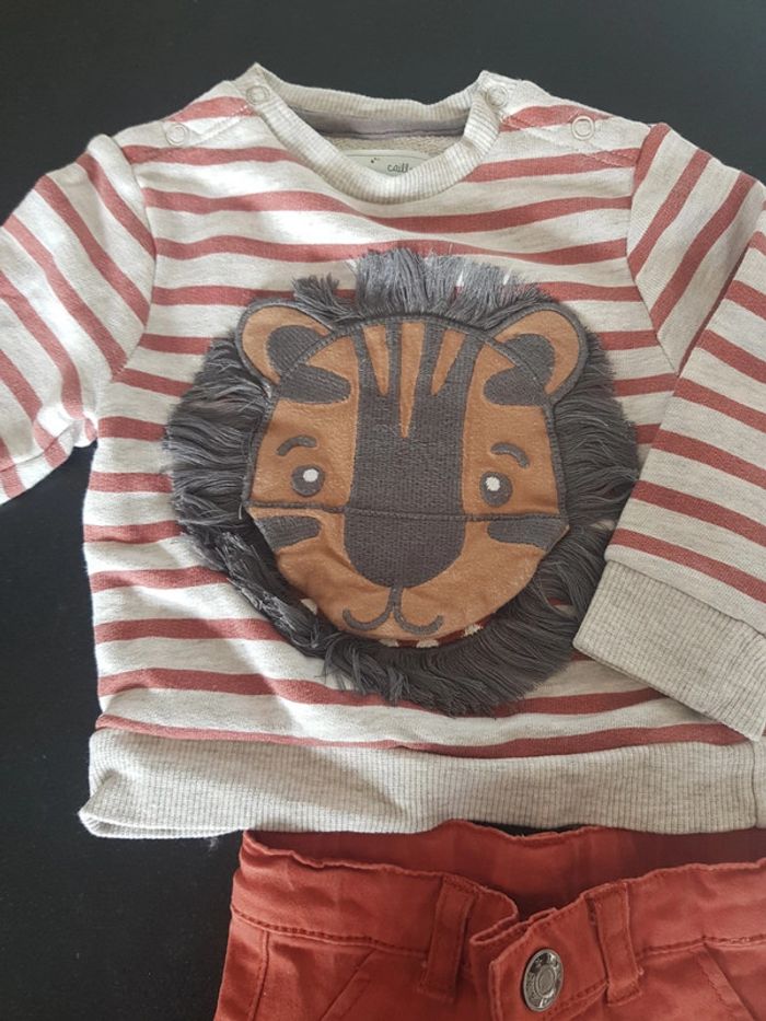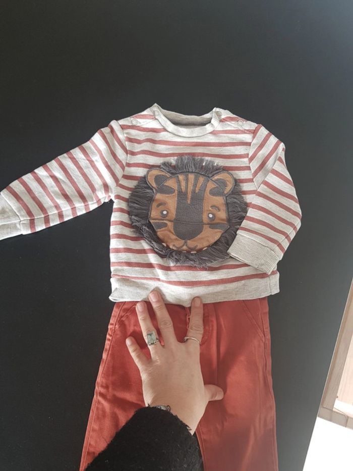Ensemble bébé garçon en très bon état Un sweat gris rayé rouille avec lion sur le devant et un pantalon rouille Taille 6 mois #bebehelio36mois