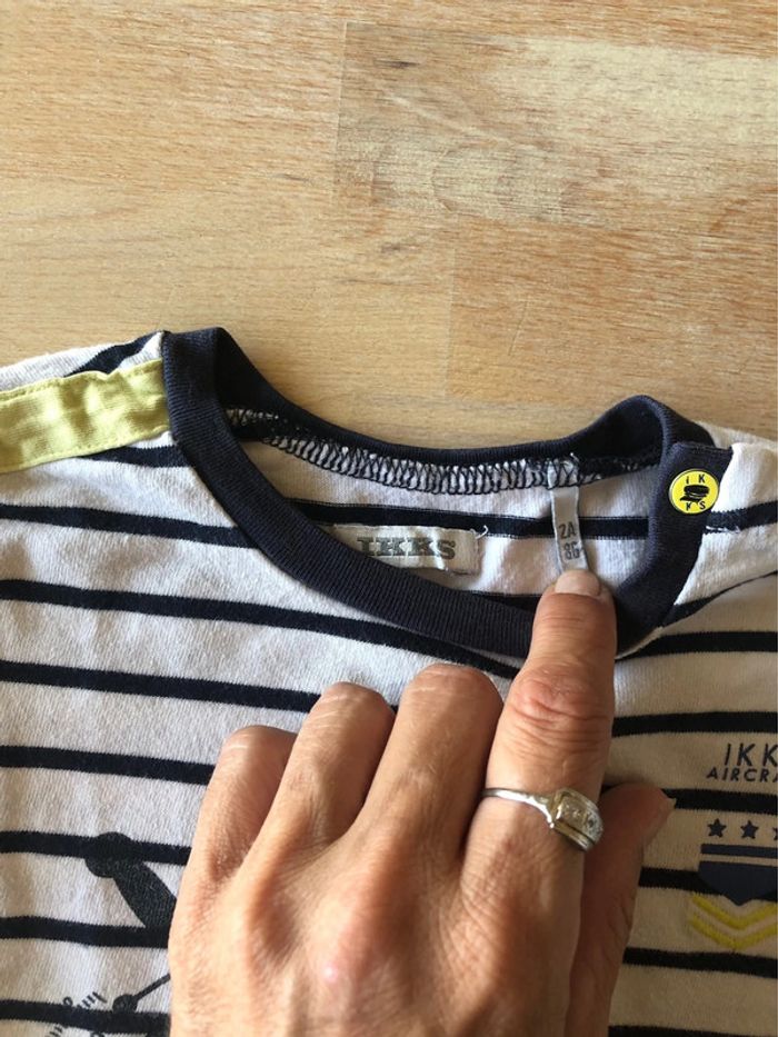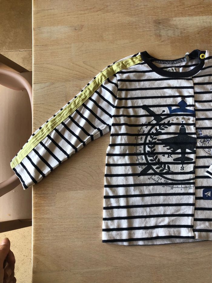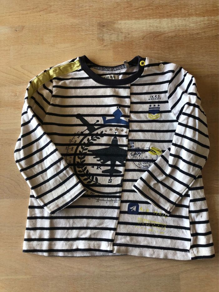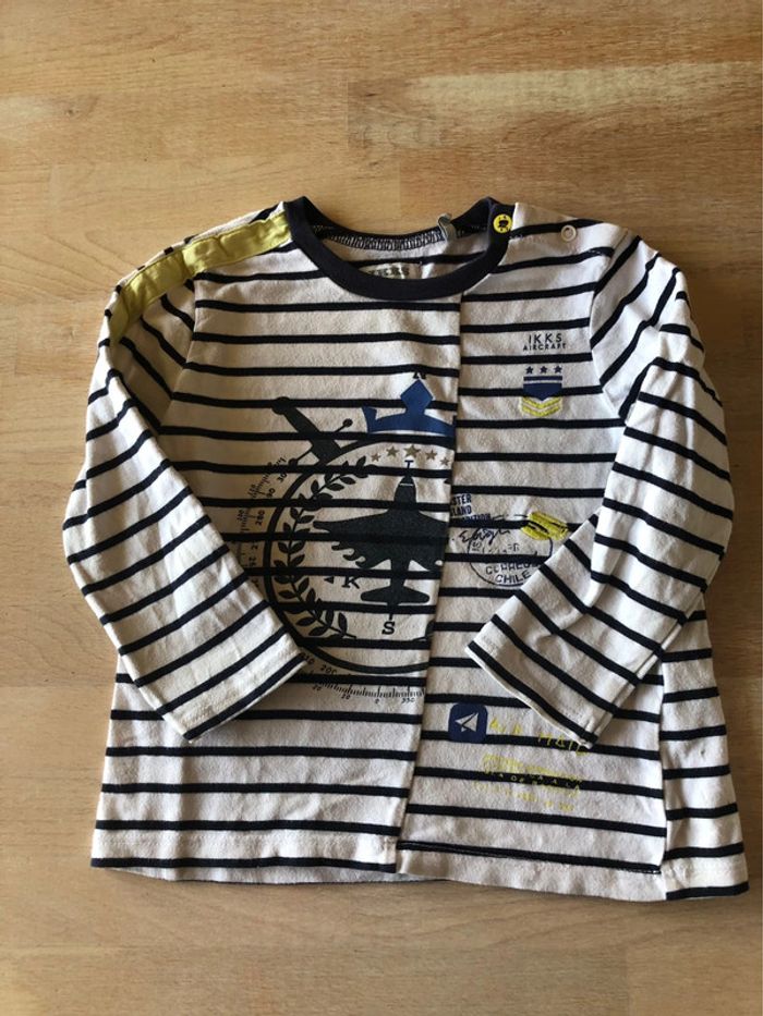 Tee shirt manches longues en coton rayé bleu et blanc avec impression avions Marque IKKS taille 2 ans en très bon état #bebehelio1824mois