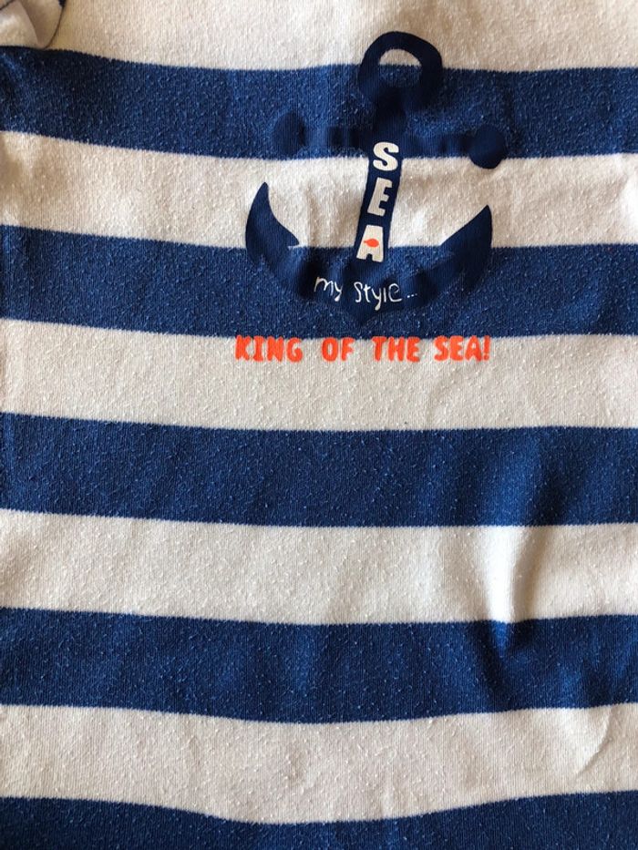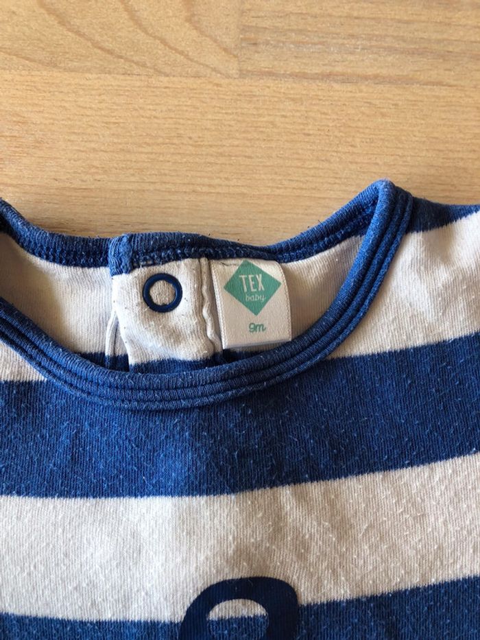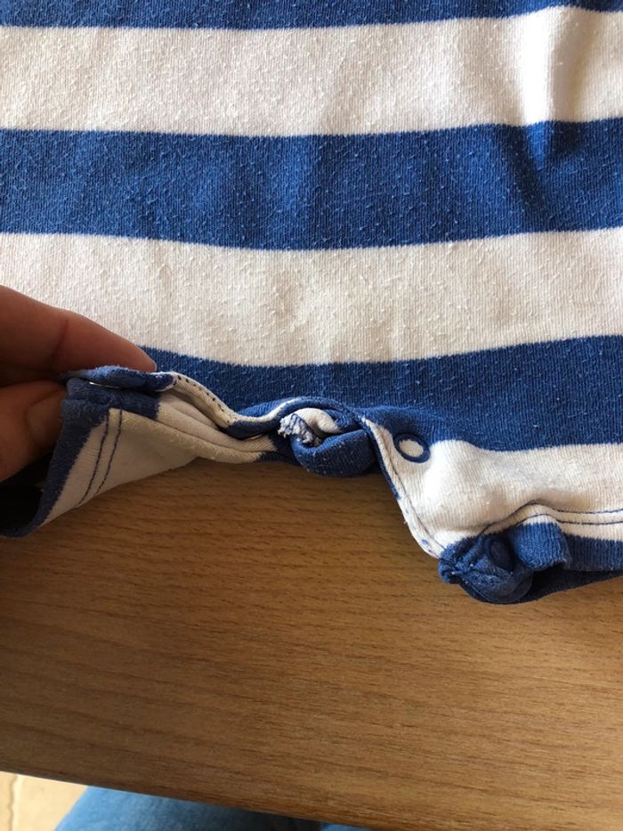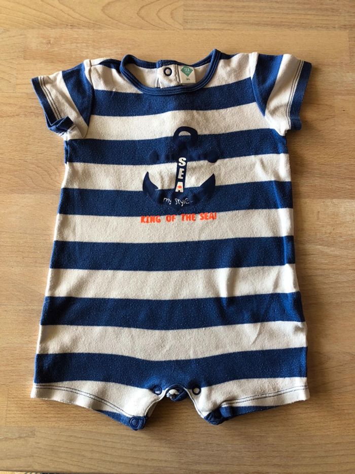 barboteuse garçon été taille 9 mois marque Tex blanche et bleue à larges rayure et imprimé ancre bon état voir photo Possibilité de faire des lots dans mon dressing pour bébé #bebehelio #bebehelio69mois