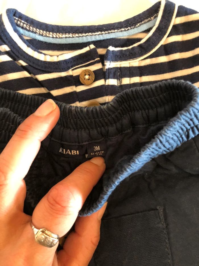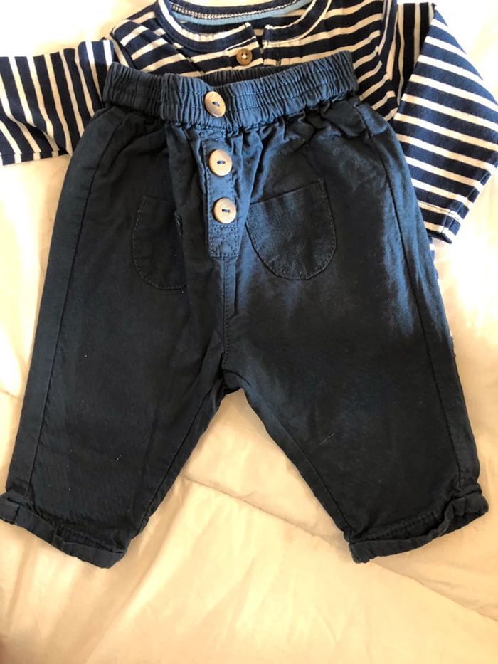 un petit pantalon forme sarouel bleu Taille 3 mois marque Kiabi