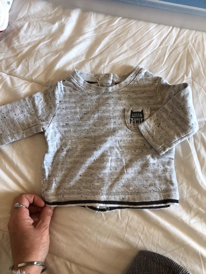 Ensemble trop mignon Un petit sarouel gris et un tee shirt qui s’ouvre de haut en bas en excellent etat, trop peu porté…. Marque Kiabi taille 3 mois Possibilité de faire des lots dans mon dressing pour bébé #bebehelio #bebehelio13mois