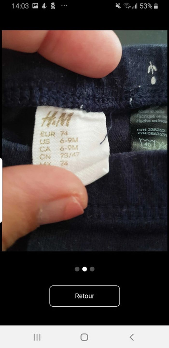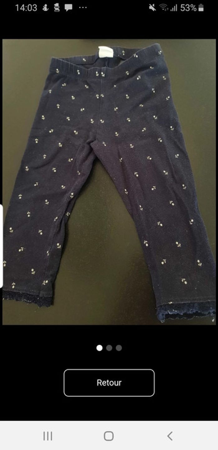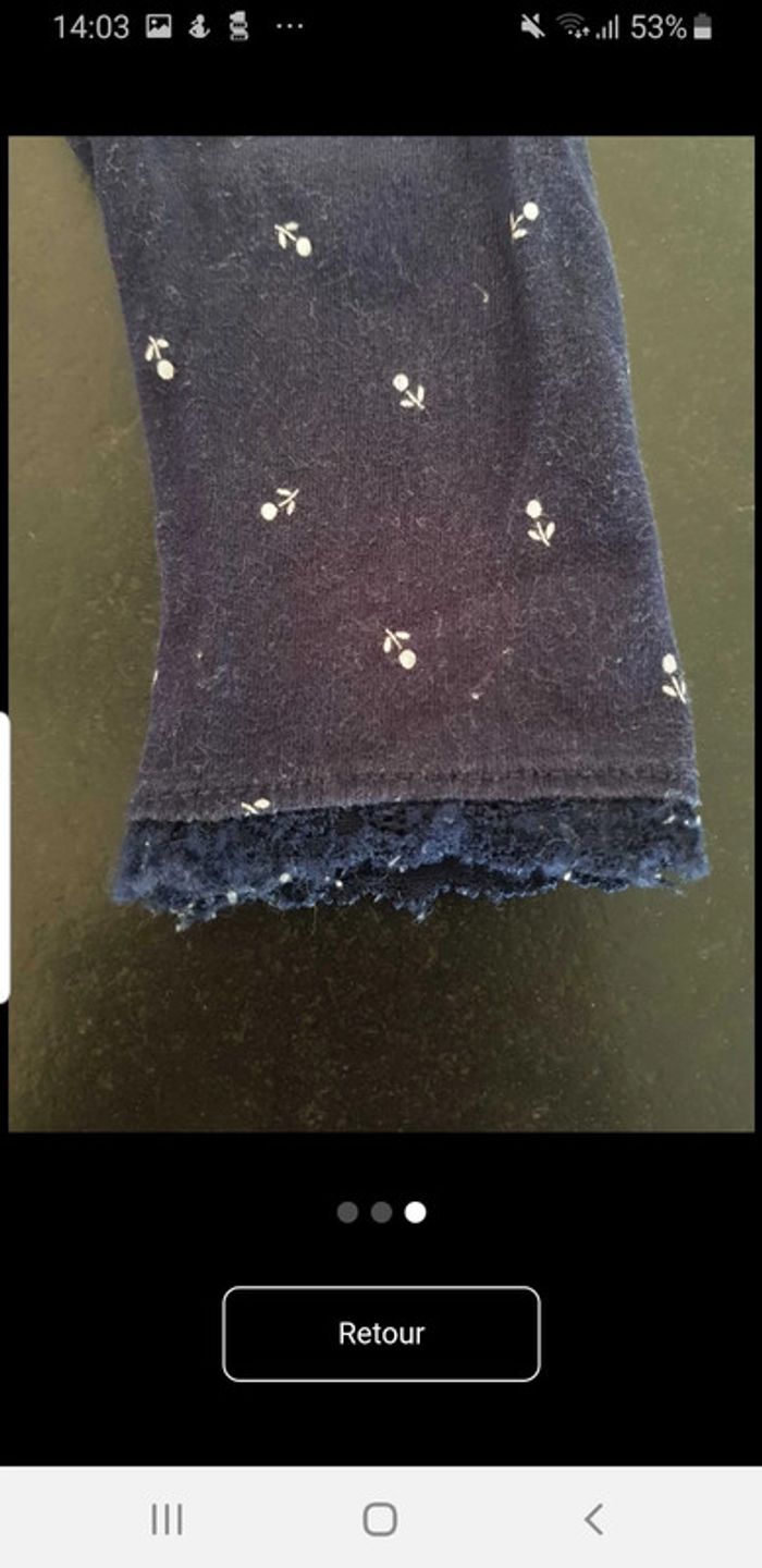 Legging fille bleu marine a petites fleurs blanches discrètes et petit revers en dentelle dans le bas Bon état Taille 6/9 mois Marque H&M