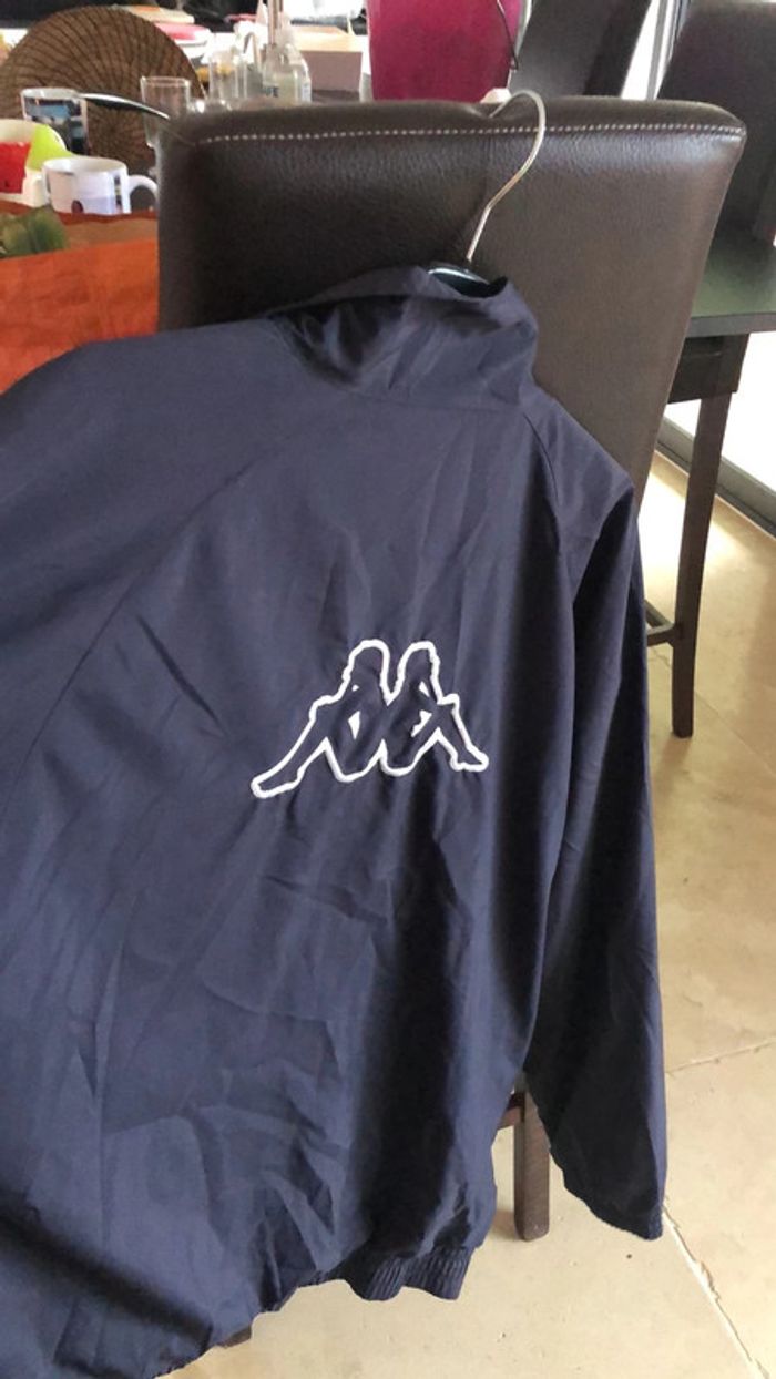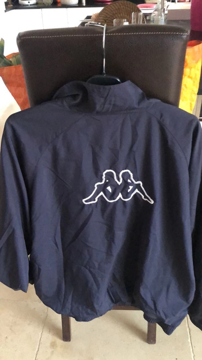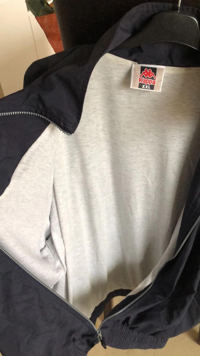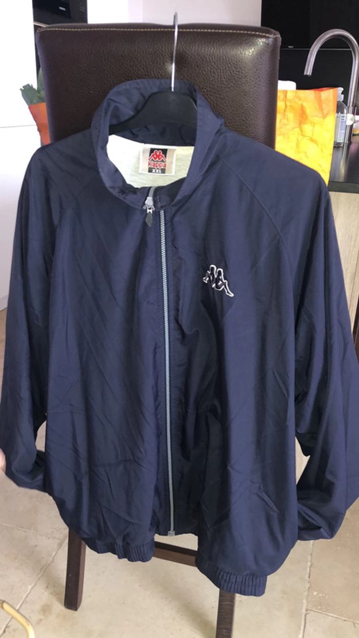 Veste bleue marine intérieur gris chiné Marque Kappa petit logo devant, gros logo derrière Taille XXL Excellent état sauf élastiques #dressinghommeod