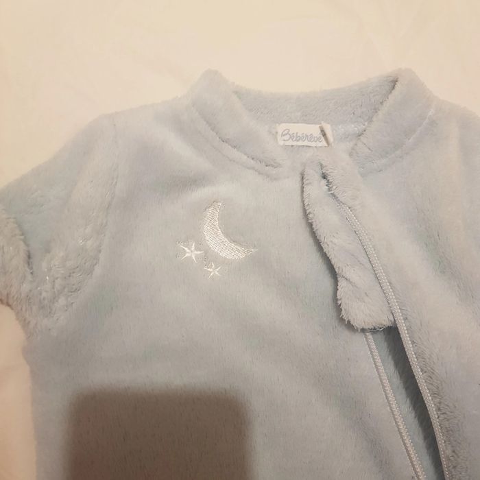 Pyjama bleu clair avec petite broderie taille 3 mois Tres bon état, très doux et pratique avec une fermeture qui va d'en haut jusqu'en bas! #bebehelio #bebehelio13mois