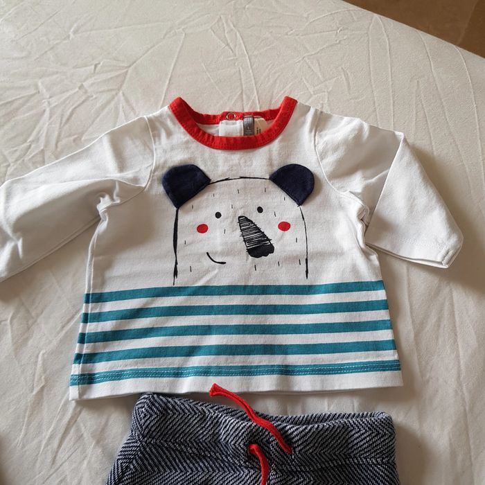Ensemble garçon Tee shirt et pantalon sarouel Tee shirt rayé avec imprimé ours, qui se déboutonne entièrement à l'arrière très pratique En tres bon état, très peu porté Paire de chaussettes offertes avec l'ensemble Marque Orchestra Possibilité de faire des lots dans mon dressing pour bébé #bebehelio #bebehelio13mois