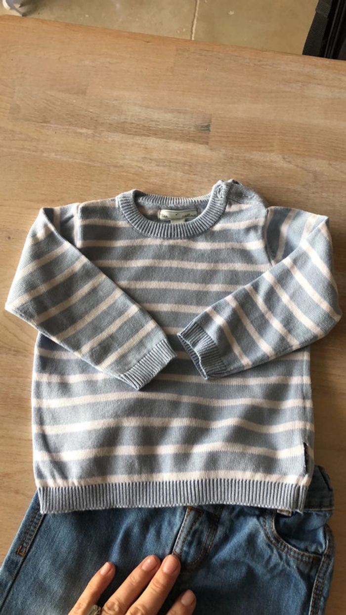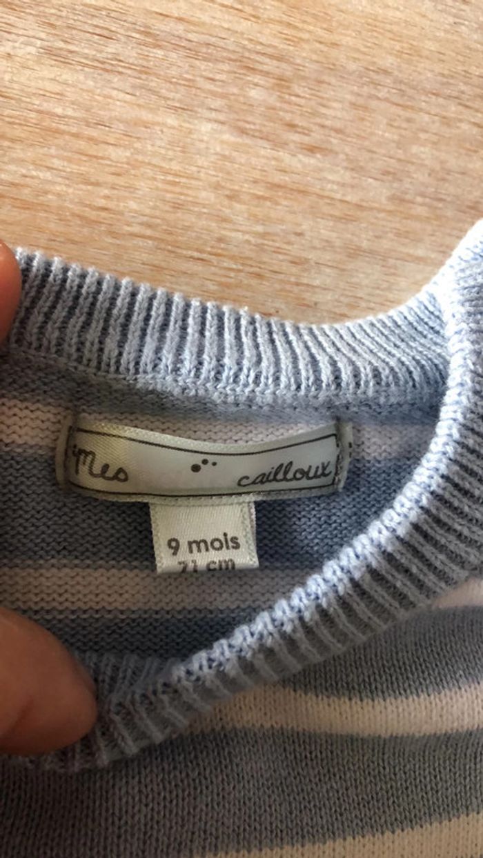 Pull marin rayé blanc et bleu clair Marque Petit caillou taille 9 mois
