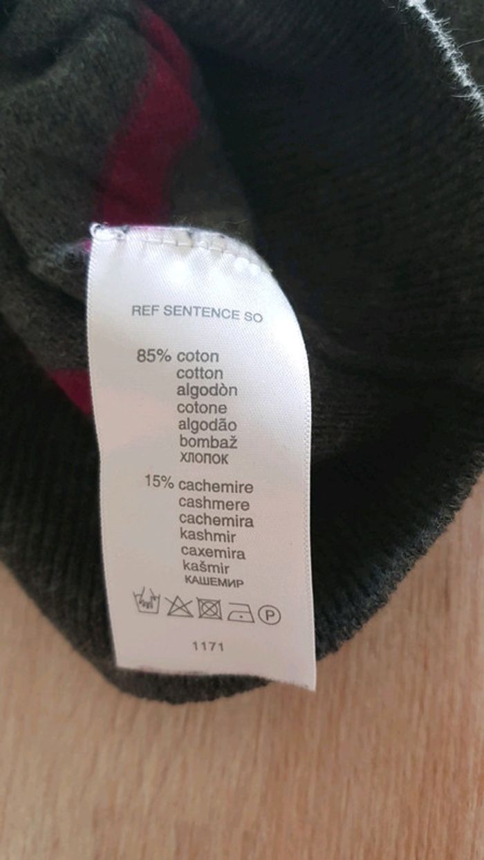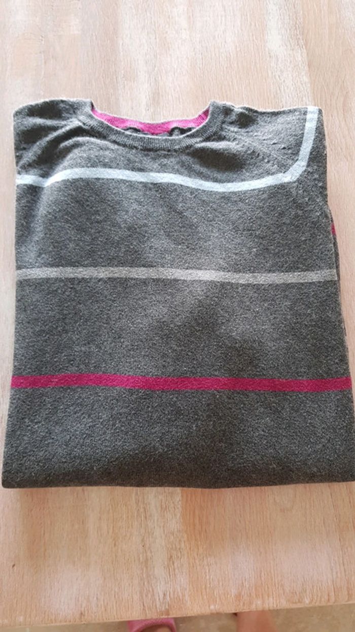 Pull homme col rond gris anthracite chiné rayé rose framboise et bleu clair 15% cashmere voir compo Celio Luxe taille XL #dressinghommeod