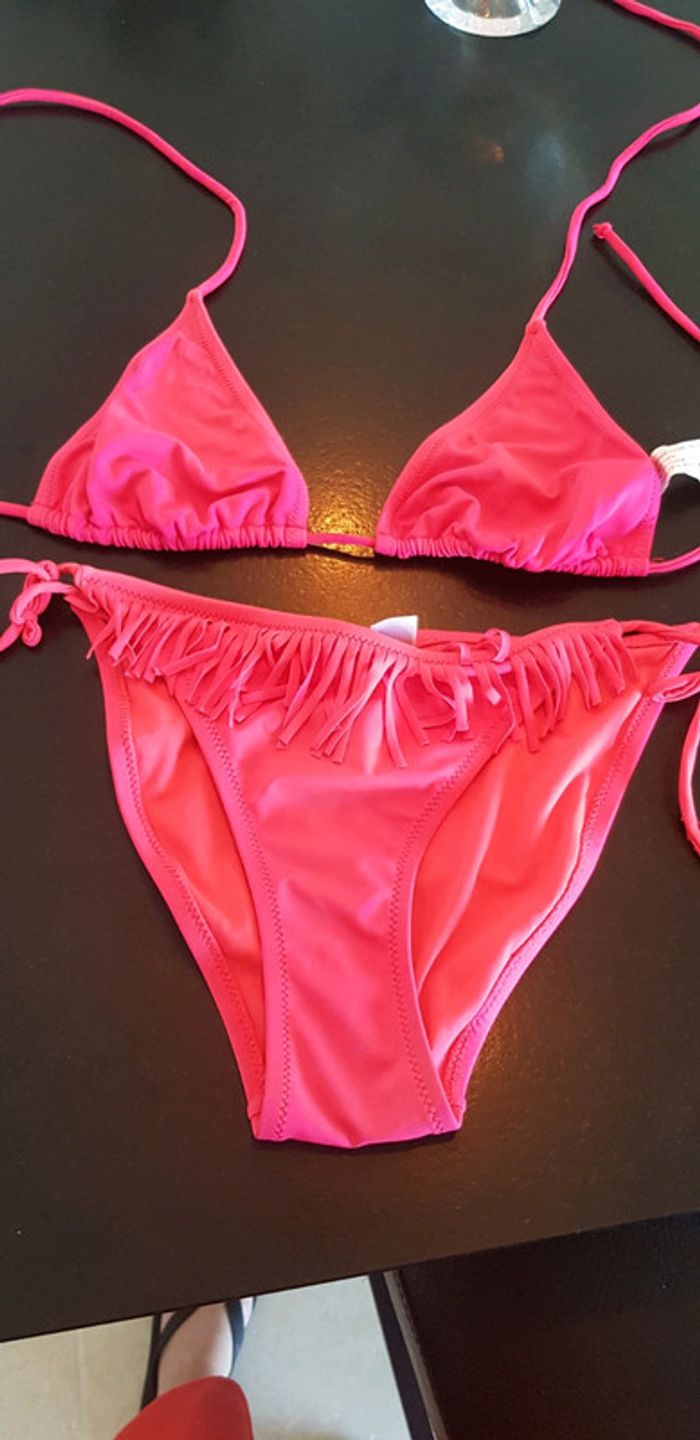Maillot deux-pièces à franges rose Forme bikini Tres bon etat