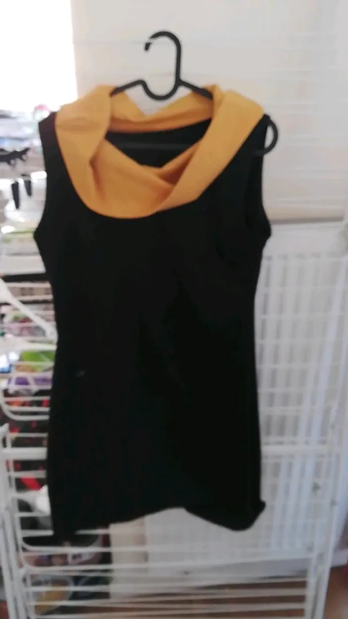 Robe noir et jaune la taille inscrit est xl mais je dirais plus m