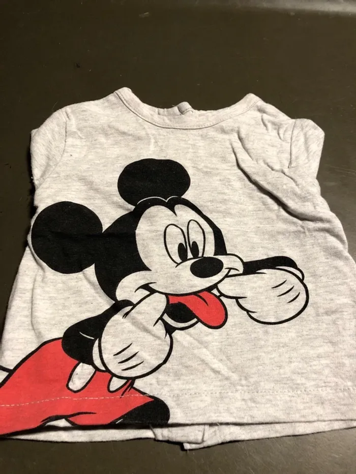 Tee shirt longues manches disney Mickey 1 mois. Ouverture complète dans le dos, porter 1 fois.