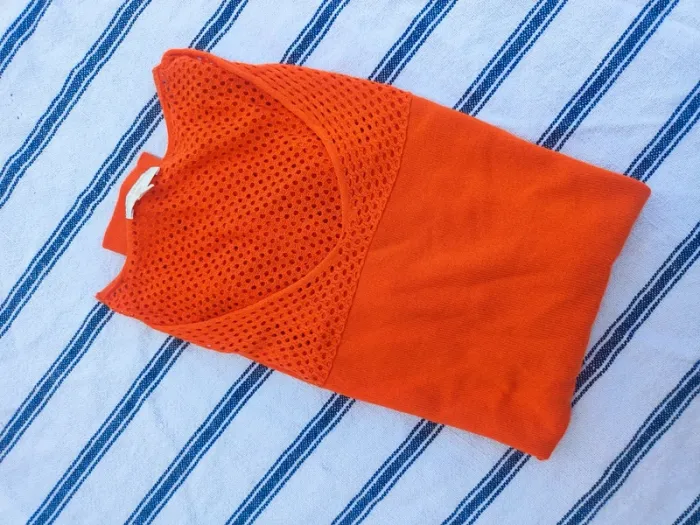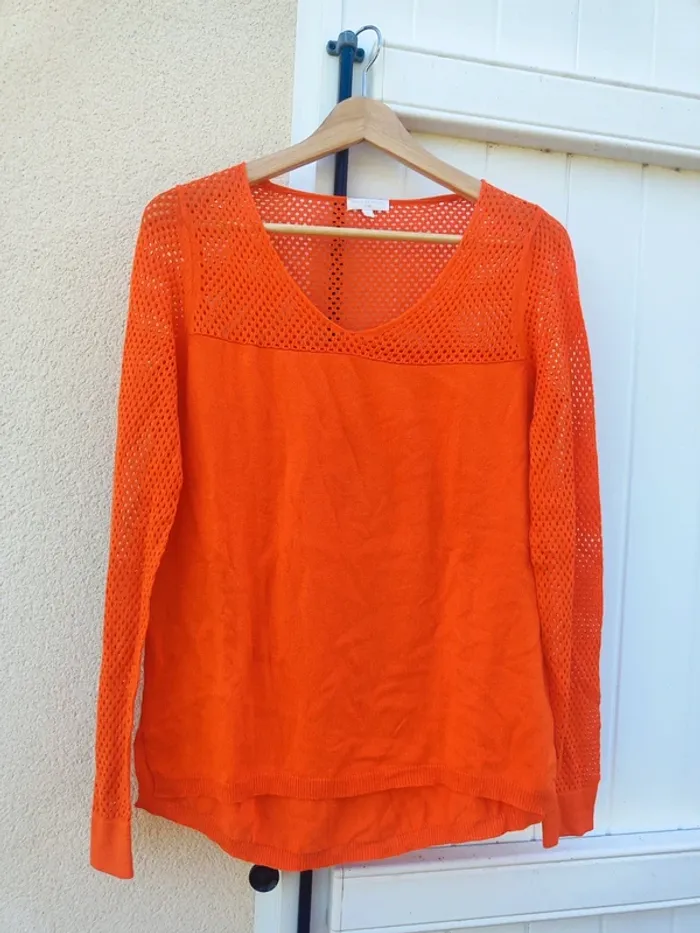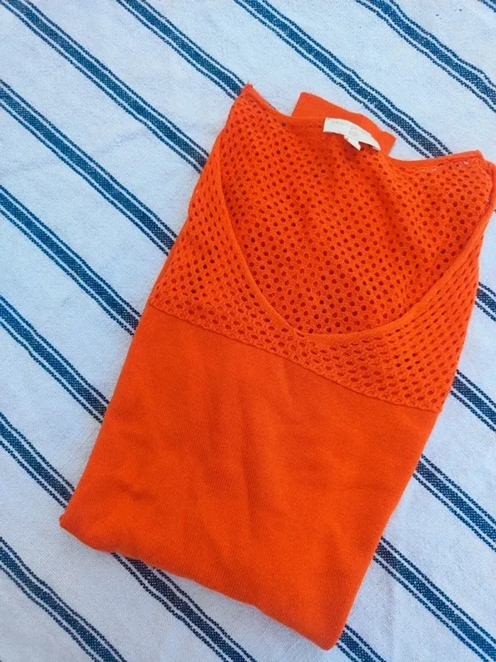 Pull orange flashy avec haut ajouré Très ambiance tennis Taille S Grain de malice