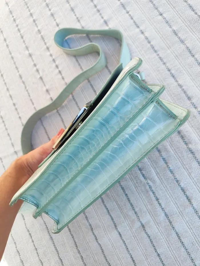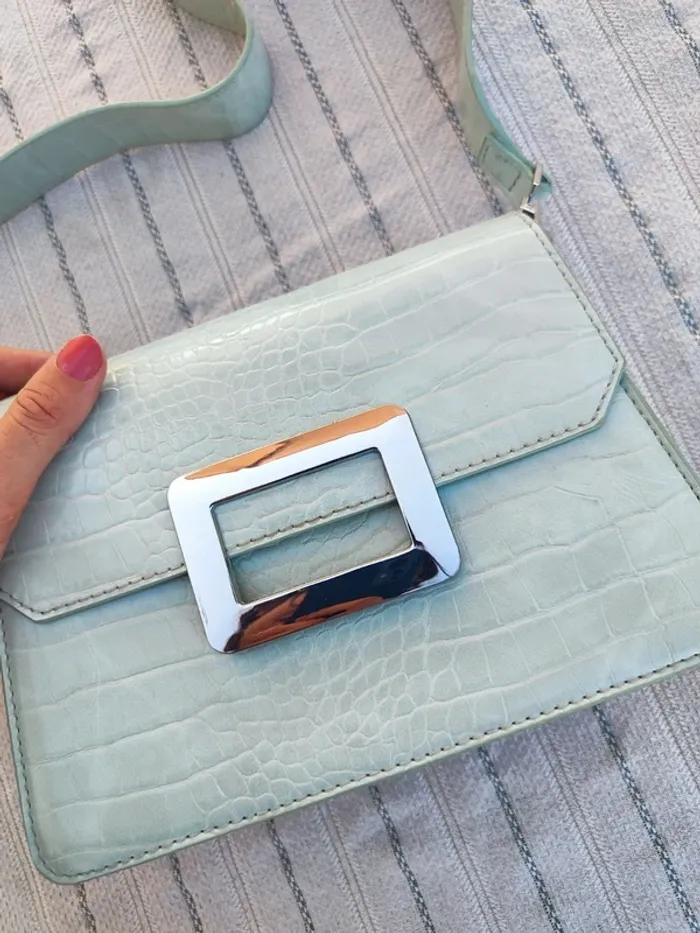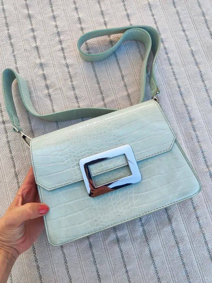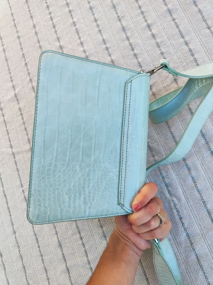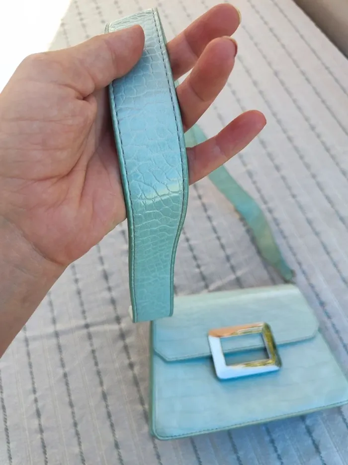 Très joli sac bandoulière écailles esprit croco Turquoise Forme rétro Pimkie neuf