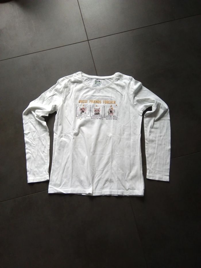 Tee-shirt manches longues mis 1 ou 2 fois donc en parfait état décor chat chien rigolo kiabi 12 ans #12ansfillenadege-88