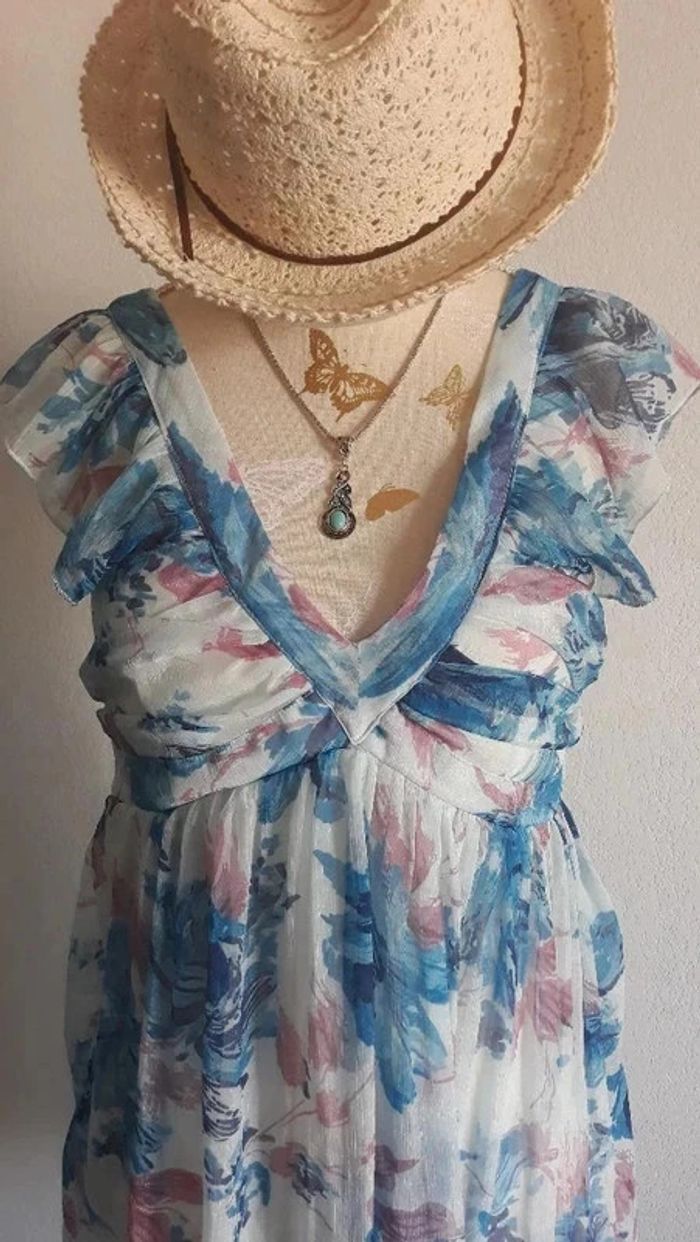 vends robe d'été excellent état couleur bleu fleurie joli décolleté taille 38/M #sabrina668338 #sabrina6683robe