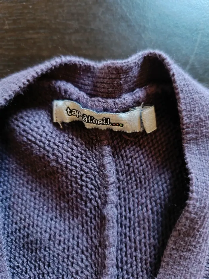 Gilet TAPE À L'OEIL Violet Manches courtes Fermé par 1 bouton 50% Acrylique & 50% Coton TAILLE 5 ANS BON ETAT Allez voir mes autres ventes!