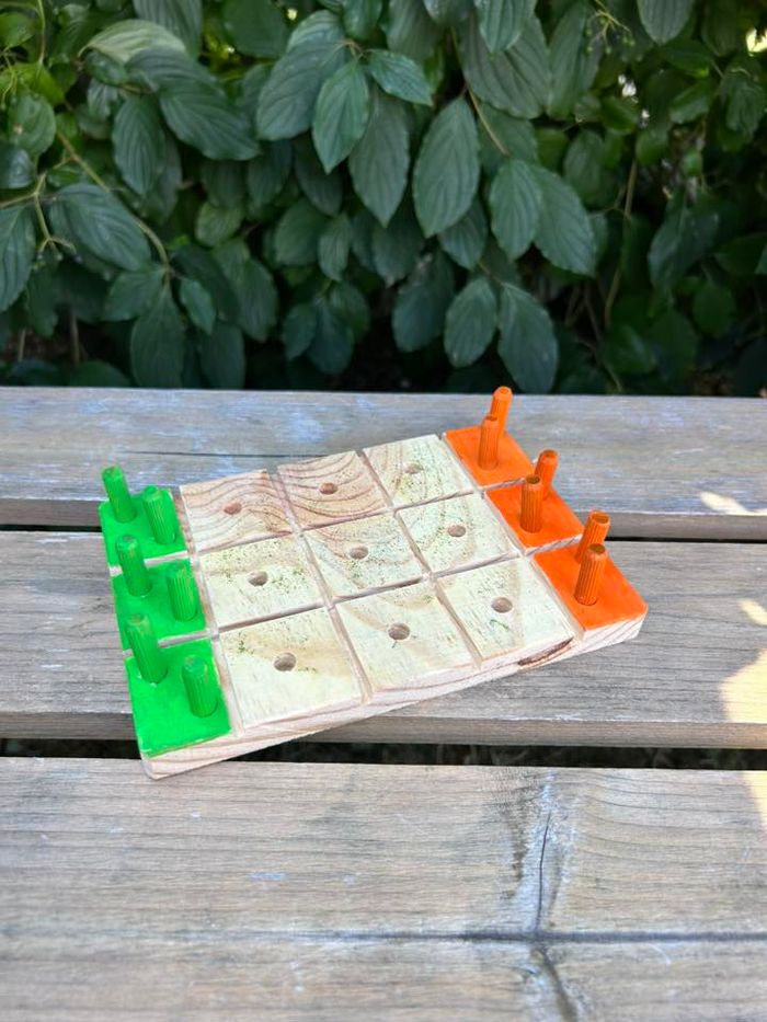 Tic tac toe en bois - couleur vert et orange - fabrication artisanale