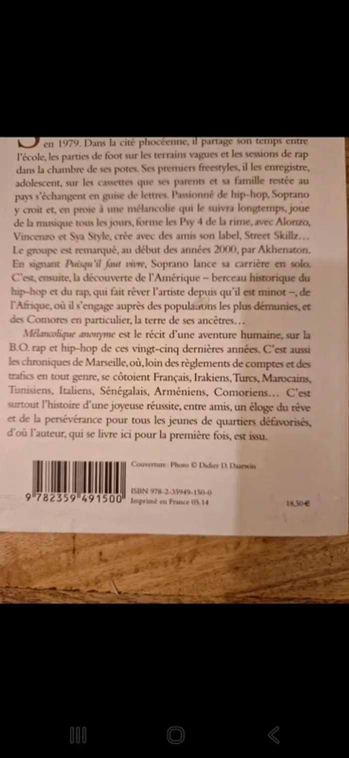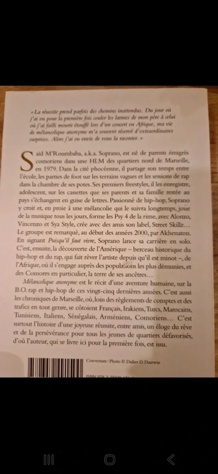 📖 Livre "Mélancolique Anonyme" – Soprano 🎤 Un récit personnel et inspirant dans lequel l’artiste revient sur son parcours, ses blessures, ses combats et son succès. 📚 Lu une seule fois, état neuf 📦 Envoi rapide et soigné. #livreloulyd #Soprano #biographiesoprano #biographie