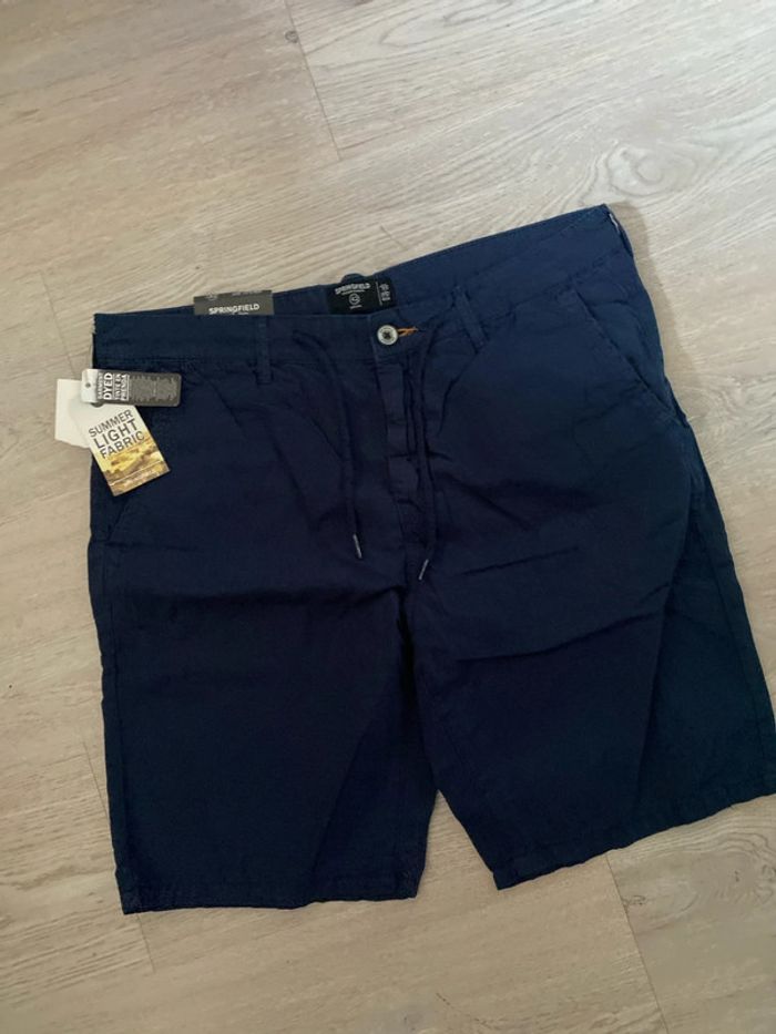 Short Springfield, taille 42 neuf Largeur de la taille 42 cm Longueur totale, 47 cm Longueur entrejambe, 21 cm 100 % coton