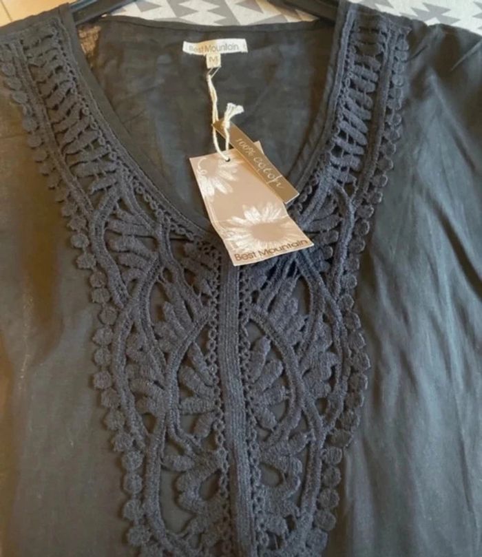 Haut tunique Best Mountain, taille M neuve Encolure empiècement, broderie En coton