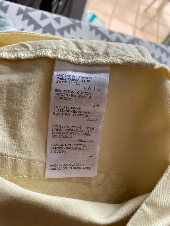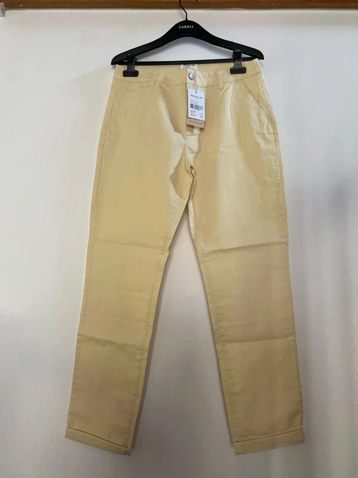 La photo correspond à un 40 mais cette annonce concerne bien un 42 Pantalon droit en coton paille Francis Maison 123 taille 42 Neuf Couleur jaune paille clair Taille mi haute