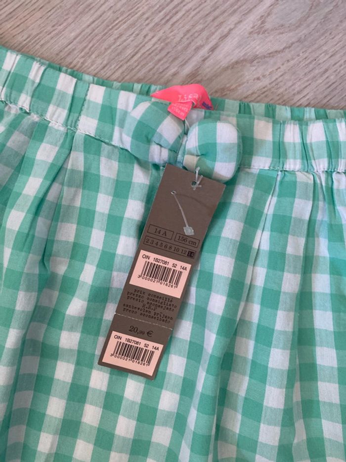 Prix fixe pour cet article. Merci de votre compréhension. Jupe, Lisa rose, taille 14 ans, Taille élastique Deux poches avant Tissus vichy vert et blanc