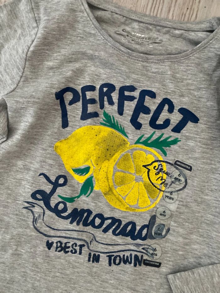 Prix fixe. Merci de ne pas faire d’offre. Tee shirt t-shirt orchestra, taille 6 ans, neuf Motif citron