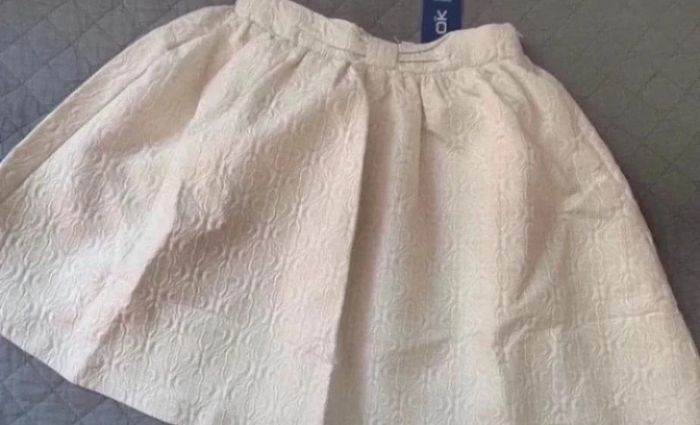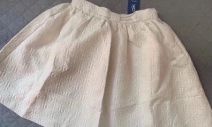 Superbe jupe collection cérémonie Okaidi taille 8 ans neuve Zip sur le côté Tissu épais avec motifs rehaussé de doré Couleur écru