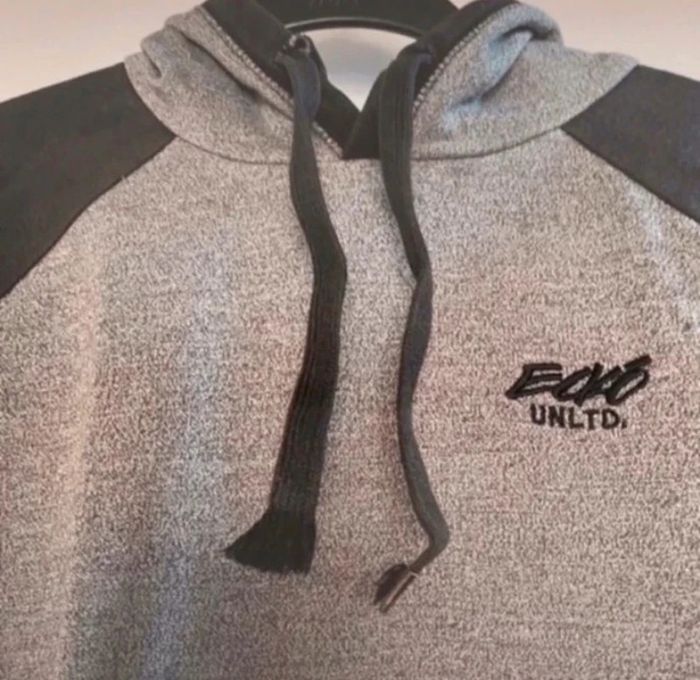 Sweat épais avec capuche de marque Ecko en très bon état juste le trou élargi ou se trouve le lien ( légère imperfection) taille M, taille bien