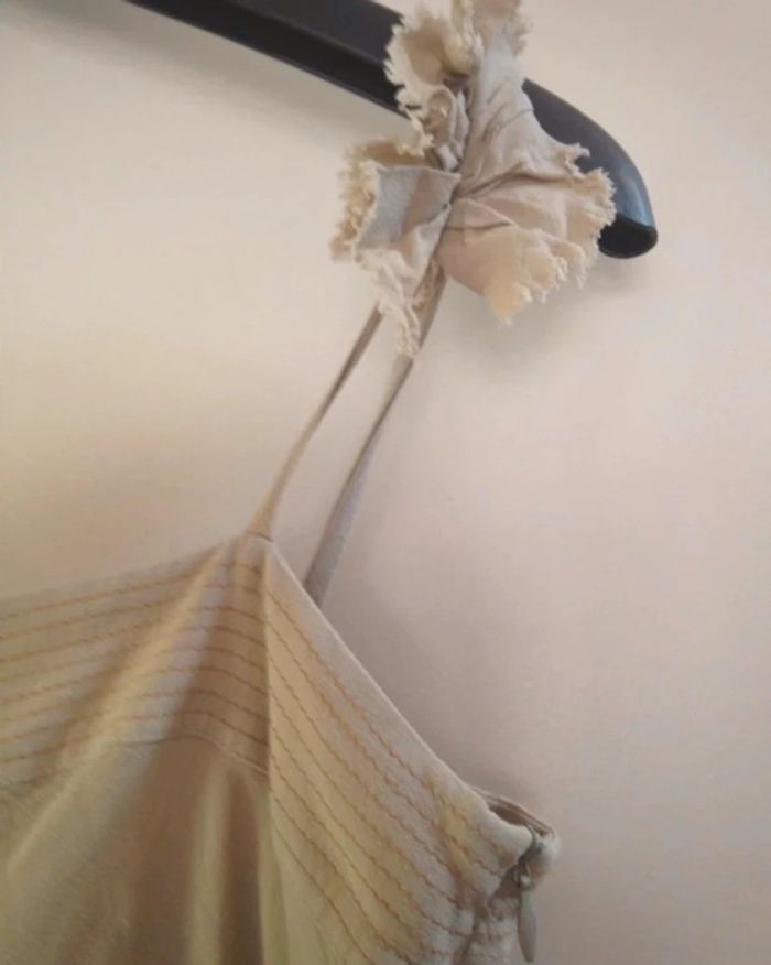 Magnifique et élégante robe Adélaide Marque Cop Copine Bretelles réglables Bas asymétrique 100 % coton mais la texture du tissu donne un effet lin