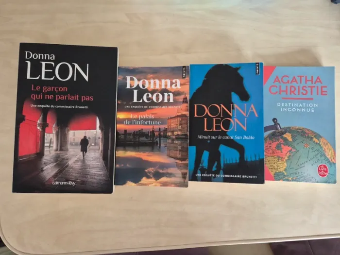 Agatha Christie destination inconnue Donna Leon le palais de l'infortune Donna Leon minuit sur le canal de San Boldo Donna Leon le garçon qui ne parlait pas Prix ferme, pas d'envoi à l'unité