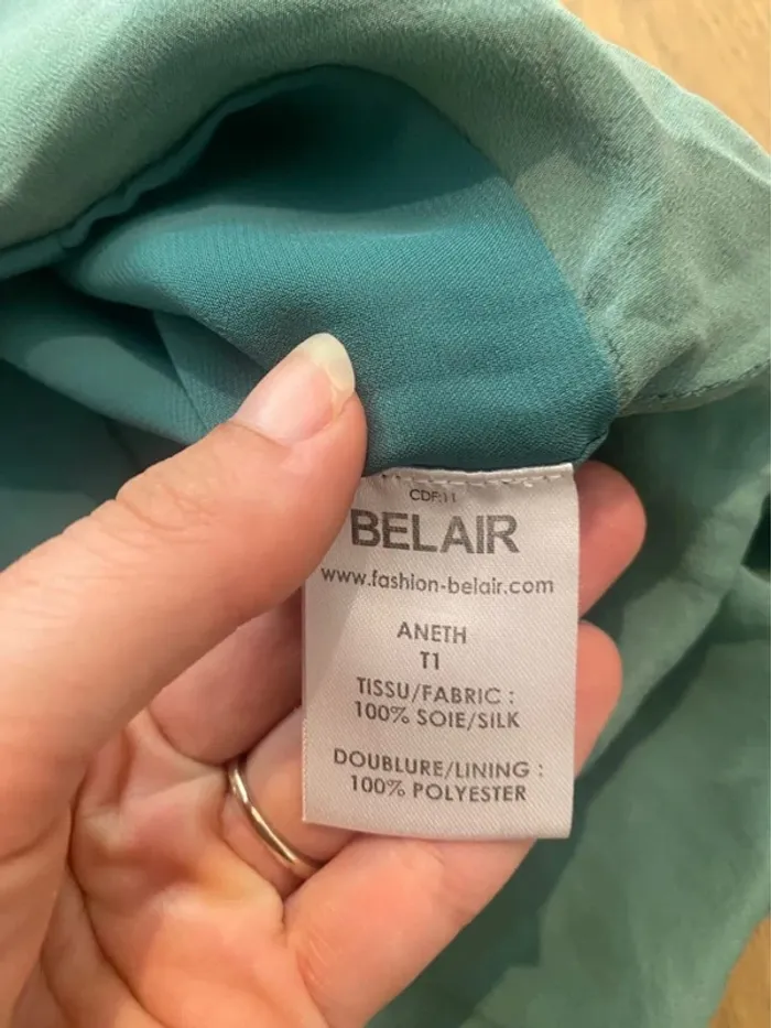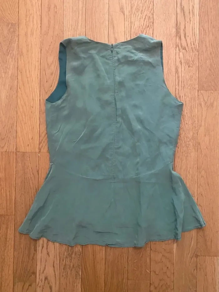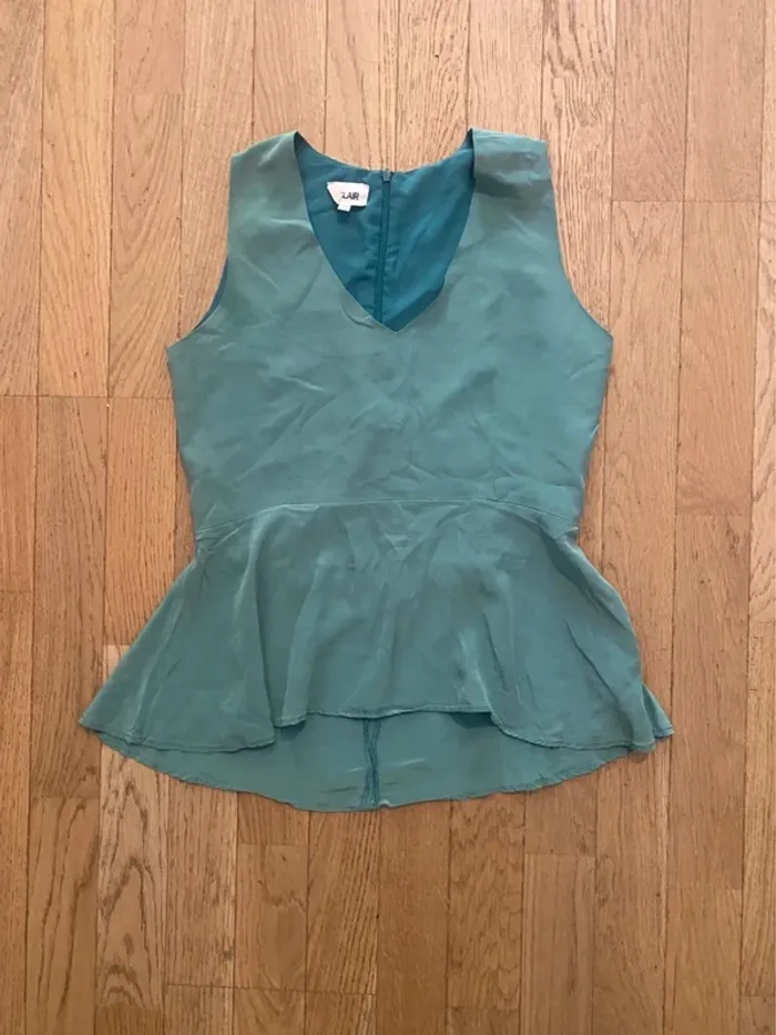 Top Peplum à la taille très flatteuse en soie verte, modèle Aneth de la marque Bel-Air. 📏 Taille : 1 (équivalent 36) ✅ État : très bon état, pas de défauts