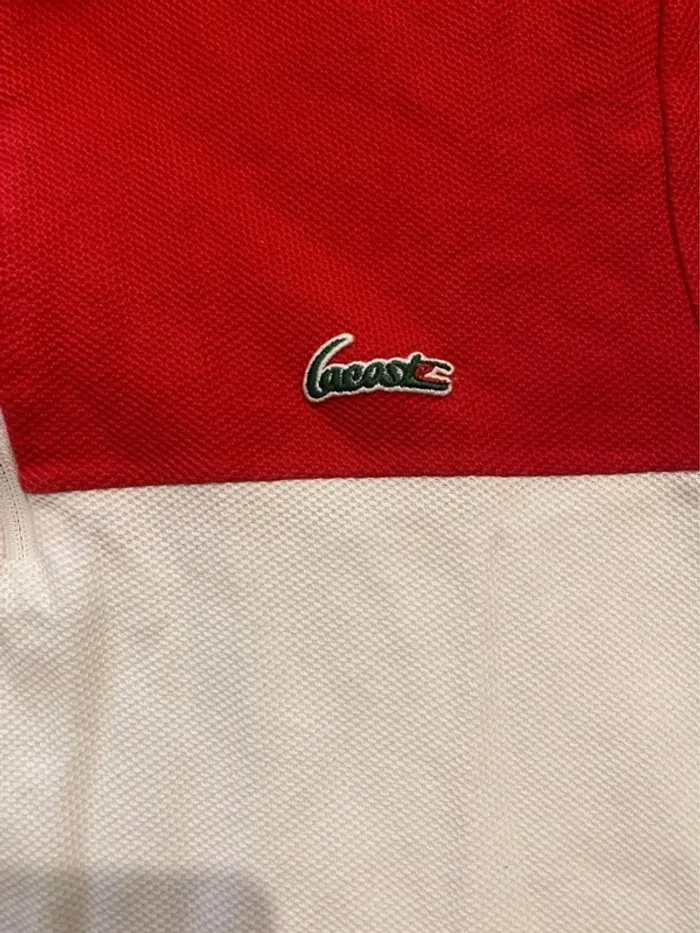 Polo Lacoste blanc et rouge slim fit taille S - photo numéro 1