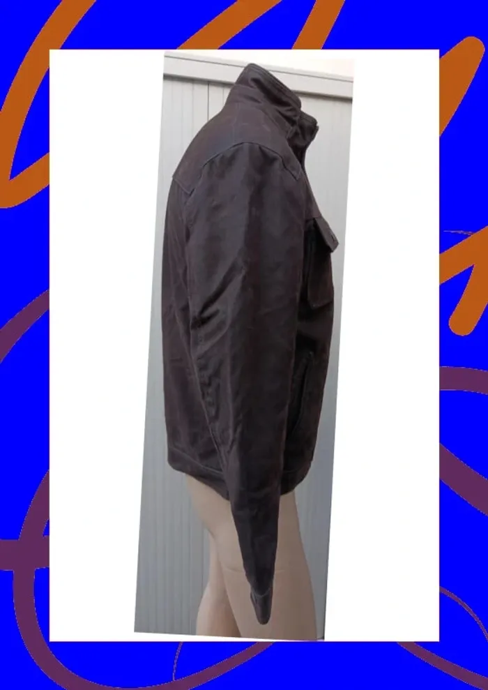 Fermeture éclair, bouton pression, 2 poches, 2 poches boutons pression, 2 poches intérieures. 100% polyester mais l'extérieur on dirait du daim. Épaule à épaule 47cm, longueur 68 cm Aisselles à aisselles 55cm #pitou83710hommeM N' hésitez pas à choisir votre point relais pour les frais de port ! J'ai tout les points relais