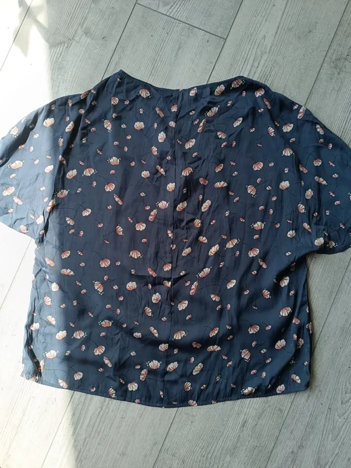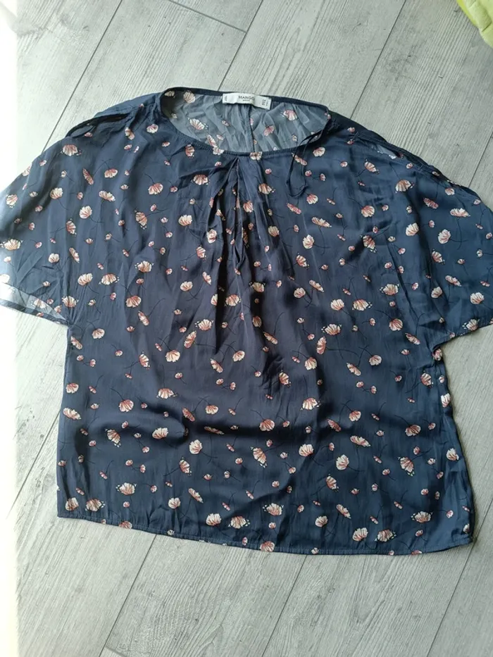 Très bon état. Haut fluide mango. Manches larges, découpes aux bras, ouverture à l'avant. En polyester. Taille L. #40catfred67